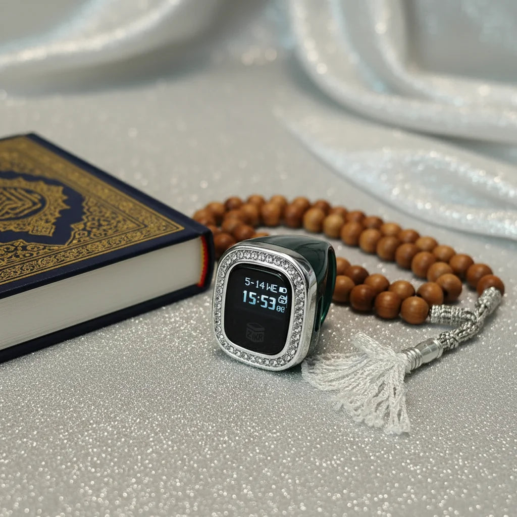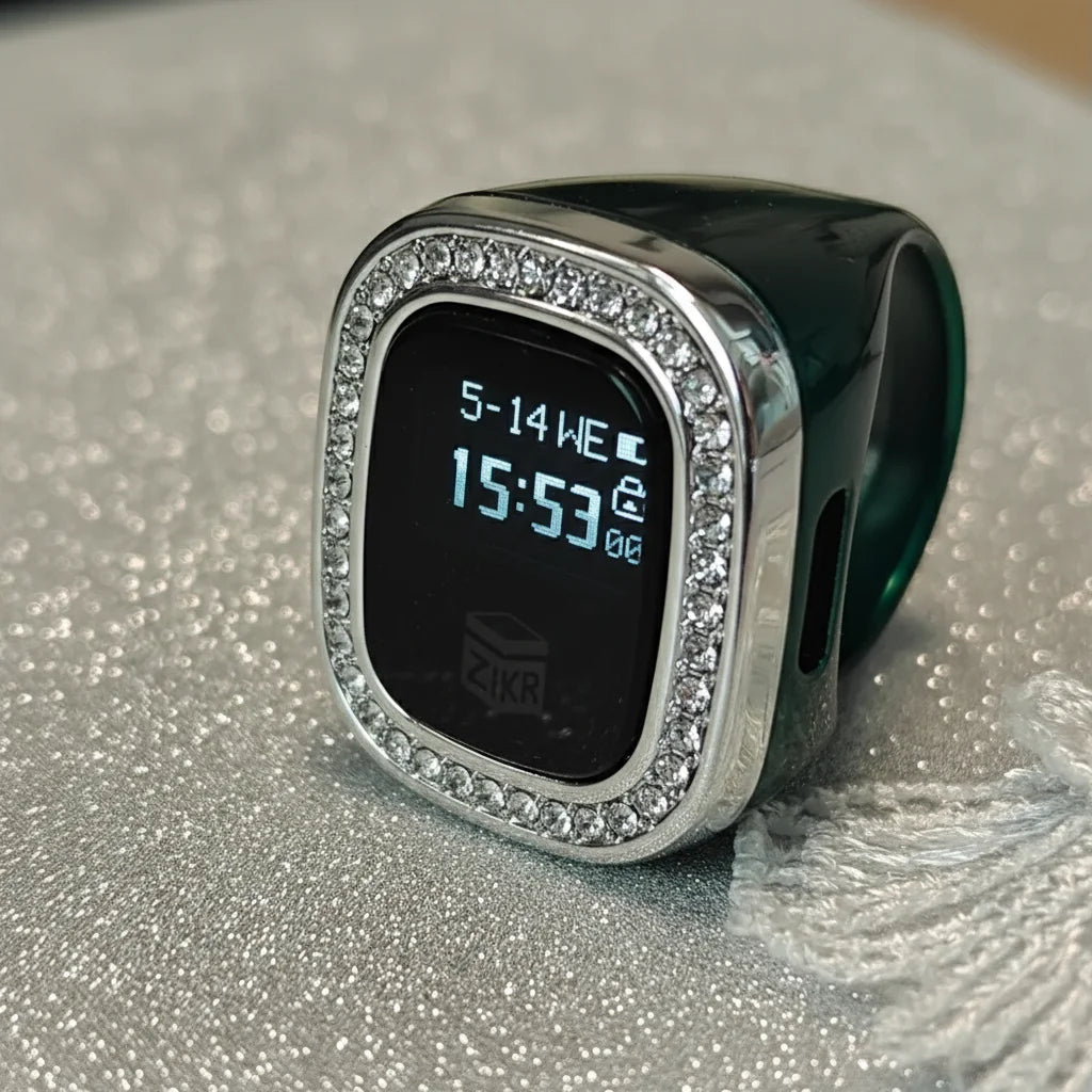 Diamond Accented Digital Tasbih Ring: Your Elegant Daily Spiritual Companion