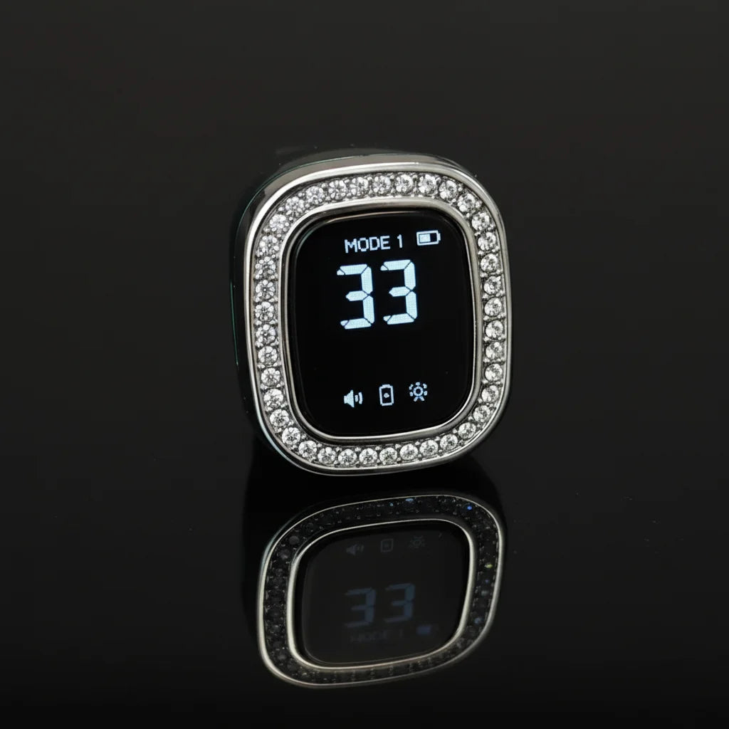 Its unique blend of advanced digital counting modes with the timeless beauty of diamond accents and a modern ring form creates an unparalleled experience, merging tradition with contemporary elegance for your mindful practice.